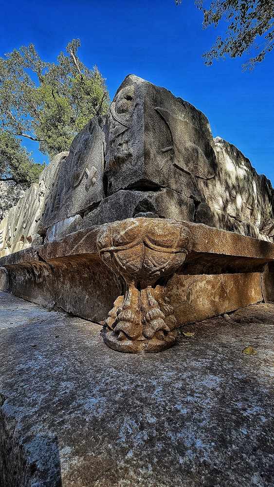 Termessos boasts numerous temples and extensive cemeteries. The variety and richness of its tombs are remarkable. Among these, the tomb of Alketas (319 BC), a prominent commander during the reign of Alexander the Great, and others are also important for shedding light on the city’s history. In addition to the monumental tombs, numerous sarcophagi with shield motifs depicting warriors occupy a significant area of the cemetery. The most interesting artifact from Termessos in the Antalya Museum is the Dog Sarcophagus, displayed in the Hall of Sarcophagi. The poetic inscription, written by the owner of a dog named Stephanos, is particularly significant for its uniqueness.